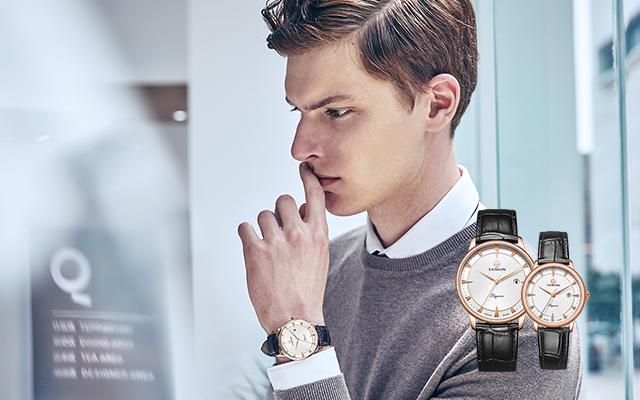 Taking rudder as the prototype and breaking through the conventional design methods by integrating the spirit of sailors with time. The three-dimensional triangular timescale symbolizing rudder grip metal solar halo dial is processed with delicate polishing technology and designed with gear texture, which makes it convenient to rectify time and the separate calendar window display at three o'clock enables you to know each day. The hour hand and the minute hand are made of inclined cutting diamond, and with three hands,time is accurately displayed. The embossment design of the "T" LOGO of TANGIN presents the elegant and delicate style of the brand.